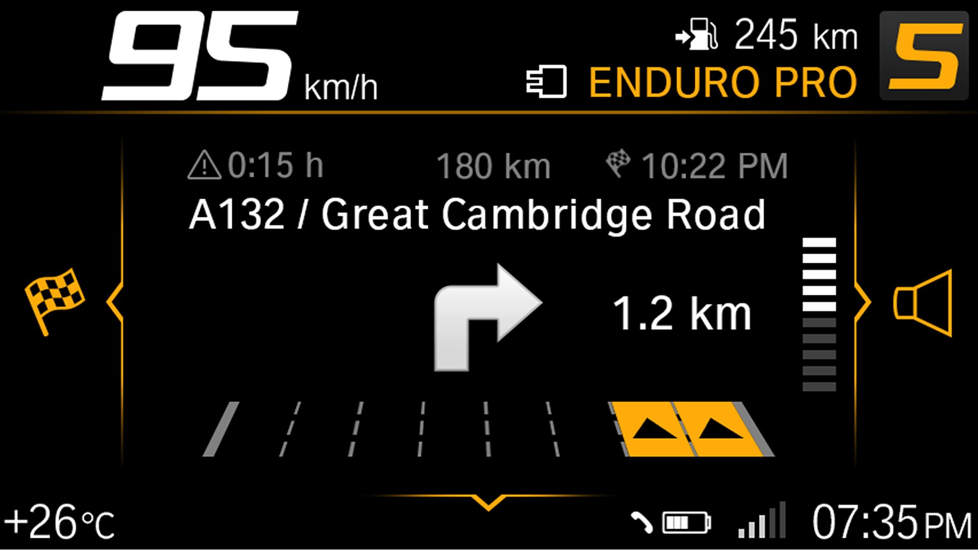 Using the Connectivity optional accessory in conjunction with the BMW Motorrad Connected App makes everyday navigation even easier - using the connection between your smartphone and vehicle, you are directed clearly and reliably to your destination by the turn-by-turn arrows shown on the TFT-display. Even in urban settings, the new arrow display is intuitive and expedient. When there is no mobile network, offline maps can also be used for navigation. For challenging tours, you can also use the tried-and-tested BMW Motorrad Navigator, which of course is compatible with the TFT-display.