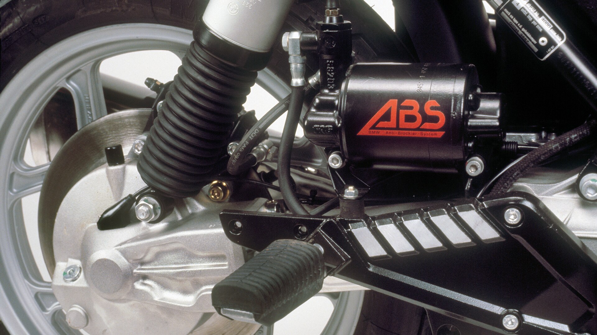 In the shaft drive, the paralever ensures that the disruptive reactive forces of the shaft drive are reduced. This largely avoids the rise and drop of the bike’s rear when accelerating and decelerating. In spring 1988, BMW was also the first manufacturer to launch an electronic-hydraulic Anti-Blocking System (ABS) for motorcycles. In addition, the K 1 was the absolute highlight of the IFMA '88. This was the world's first motorcycle with digital engine electronics and featured an exciting avant-garde design.